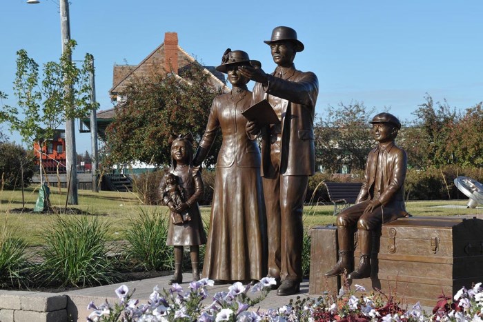 The statue captures the hopes and dreams of settlers arriving off the train to start their new life.