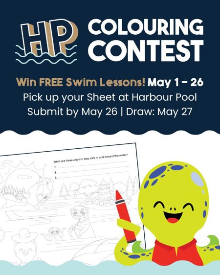 Looking for a fun and creative activity for the kids this spring? Enter our Colouring Contest for a chance to win a full set of Lifesaving Society swim lessons at Harbour Pool.