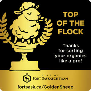 The Golden Sheep Sticker Awards recognize Fort Saskatchewan households that excel at sorting organics correctly. By placing the right items in the green cart, like food scraps, yard waste, and compostable paper, residents help reduce landfill waste and support a cleaner, greener community. This fun program rewards great sorting habits and encourages everyone to do their part.